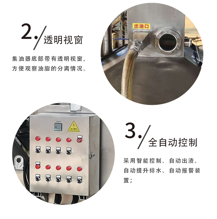 隔油提升一體化設備,油水分離設備是我公司目前對隔油設備進行全面的產品升級,產品做了多項技術改進和升級優(yōu)化,具有廚房來水雜物自動分離并自動收集到雜物桶,污泥自動分離,油脂自動分離,污水自動提升排放到市政管網等功能。