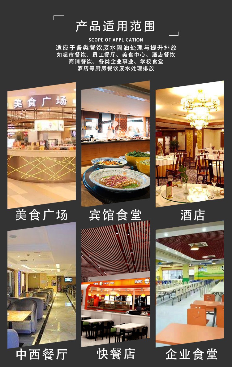 隔油提升一體化設備,油水分離設備 采用新型多級油水分離處理工藝設計以及智能化控制系統(tǒng),解決了地下室餐飲廢水處理中雜物分離、油水分離收集等問題,具有操作維護簡便,運行穩(wěn)定等顯著優(yōu)點。