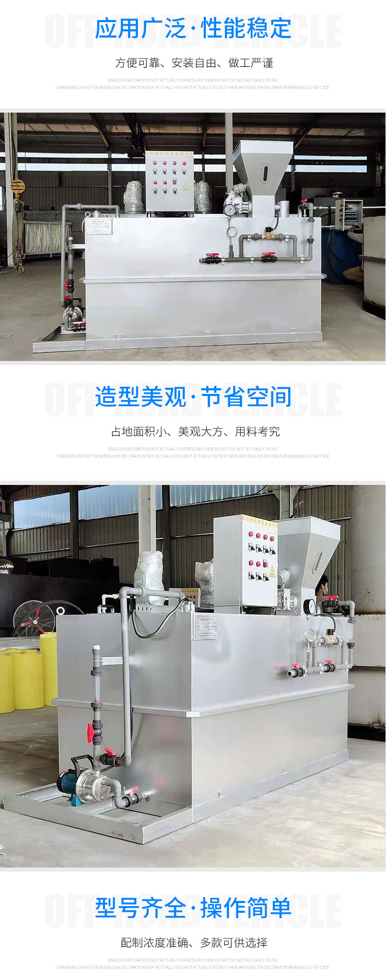 自來(lái)水廠自動(dòng)加藥設(shè)備是設(shè)計(jì)用于粉狀物料的全自動(dòng)連續(xù)配制和投加系統(tǒng),從粉劑到配制好的溶液,整個(gè)過(guò)程均達(dá)到全自動(dòng)、安全、連續(xù)運(yùn)行。干粉按要求的投加量(設(shè)定螺桿轉(zhuǎn)速)從料斗進(jìn)入混合器。